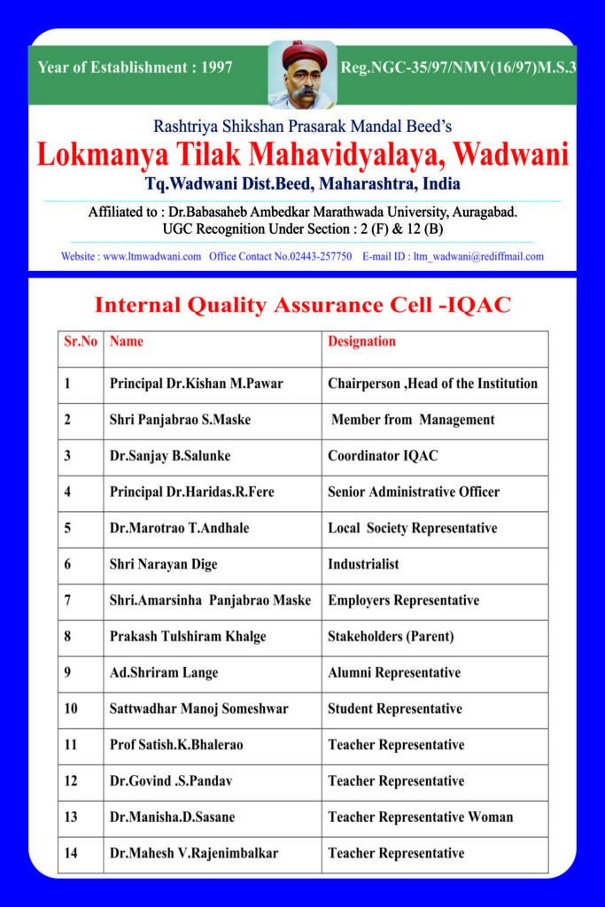 Lokmanya Tilak Mahavidyalaya, Wadwani