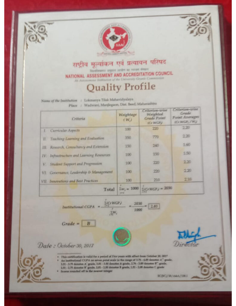 यु.जी. सी. २ (एफ) व १२ (बी) मान्यता प्राप्त, नॅक 'बी' दर्जा प्राप्त